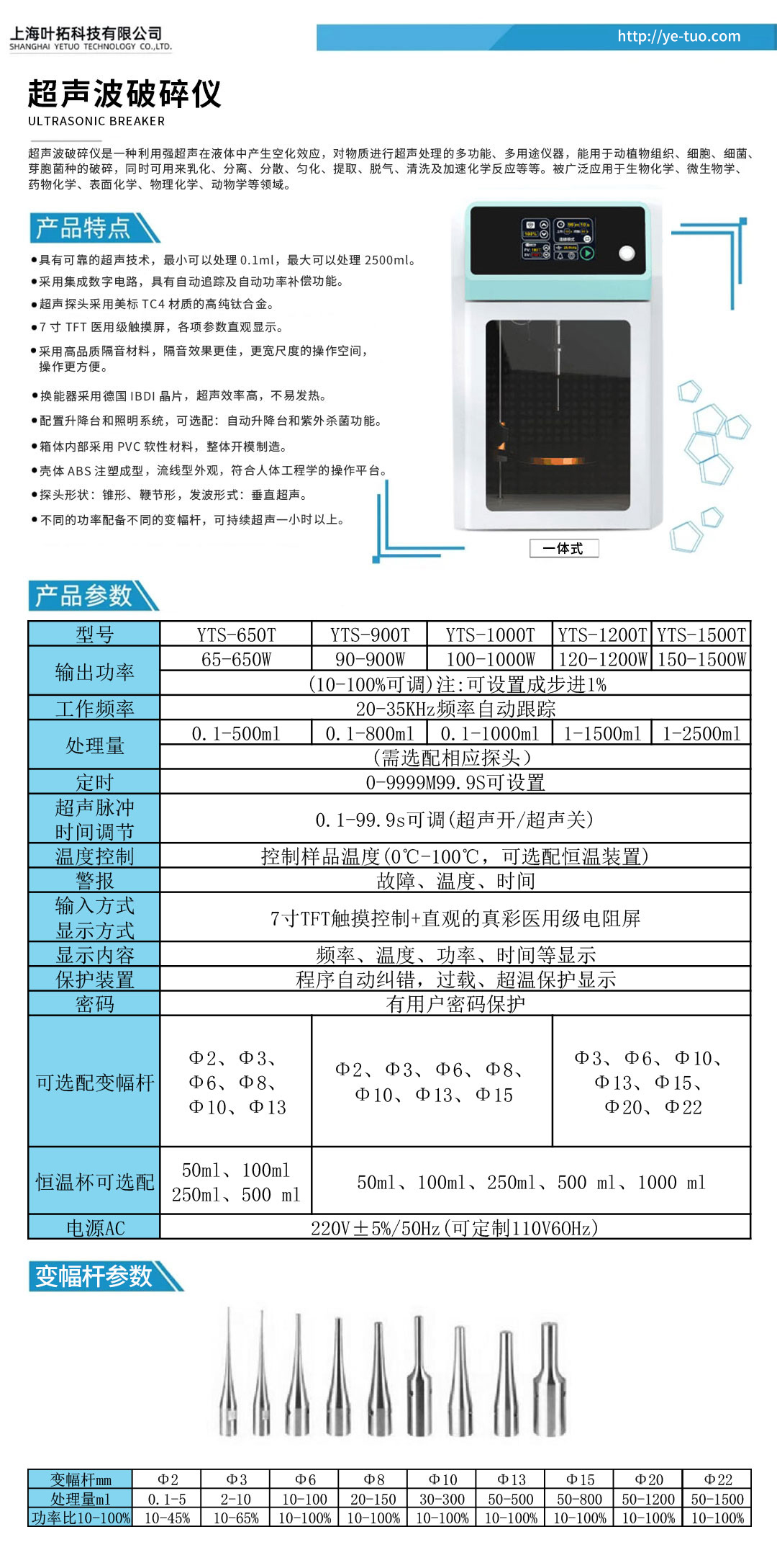 上海葉拓 YTS系列 一體式超聲波細胞破碎儀