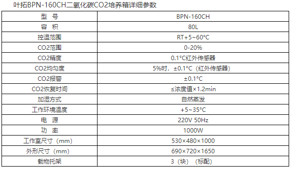 葉拓BPN-160CH二氧化碳CO2培養箱產品特點