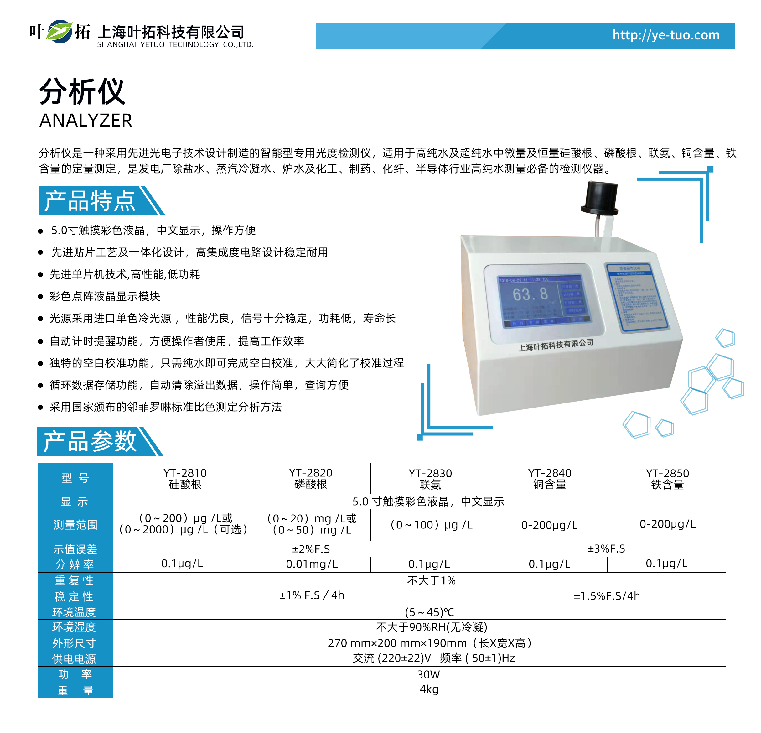 葉拓YT系列分析儀產(chǎn)品特點: