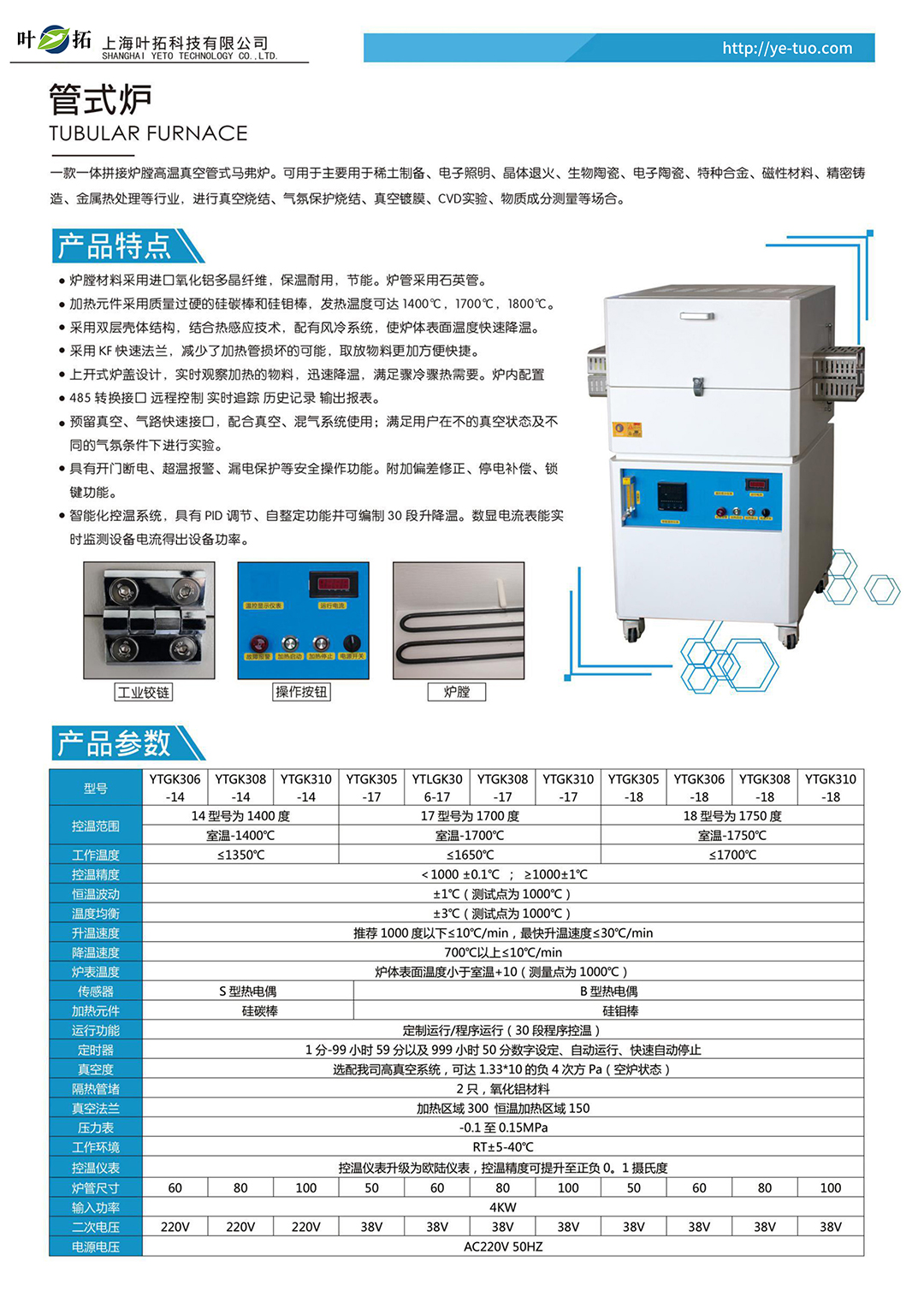 葉拓YTGK系列開啟式真空管式爐產(chǎn)品特點